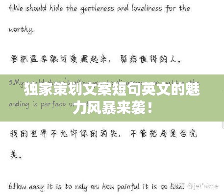 在全球化日益盛行的今天,英语的影响力已经渗透到各个领域,尤其在广告、宣传、媒体等领域,英文文案的重要性愈发凸显。“独家策划文案短句英文”更是以其独特的魅力和力量,成为各大品牌、企业和个人竞相追逐的焦点。