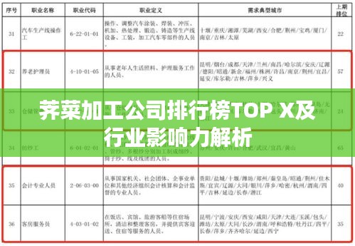 荠菜作为一种常见的蔬菜,因其独特的口感和营养价值受到广大消费者的喜爱,随着市场需求的不断增长,荠菜加工行业逐渐兴起,众多荠菜加工公司纷纷涌现,本文将介绍一些在行业内具有较高知名度和影响力的荠菜加工公司排名,并探讨它们的市场地位及行业影响力。