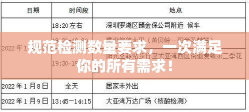 检测数量规范是保证检测工作质量的基础,也是提高工作效率、确保检测结果准确的重要手段,我们应充分认识到检测数量规范的重要性,遵循科学性、实用性和灵活性原则,制定并执行严格的检测数量规范,我们还需不断完善和优化检测数量规范,以适应不断变化的工作需求和条件。