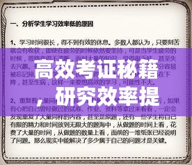 在学术研究、知识探索的过程中,考证是一项至关重要的工作,传统的考证方法有时可能会面临效率低下的问题,使得研究进度缓慢,甚至陷入僵局,掌握高效考证方法,提升研究效率,已成为现代学者和研究者的迫切需求,本文将介绍一些高效考证方法及其在实际应用中的效果,以期对读者有所启示和帮助。