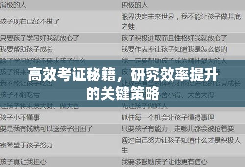掌握高效考证方法对于提升研究效率具有重要意义,在实际研究中,研究者应灵活运用各种高效考证方法,并结合实际情况进行调整和优化,通过不断提高自身的专业素养和效率意识,研究者将能够在学术研究中取得更好的成果。