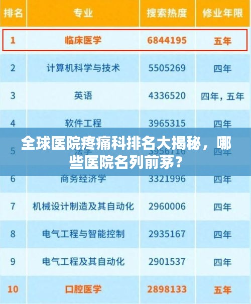 疼痛科是现代医学中越来越重要的一个领域,对于许多患者来说,疼痛科的治疗效果直接影响着他们的生活质量,在世界范围内,哪些医院的疼痛科备受推崇,排名靠前呢?下面将为您揭晓世界医院疼痛科的排名。