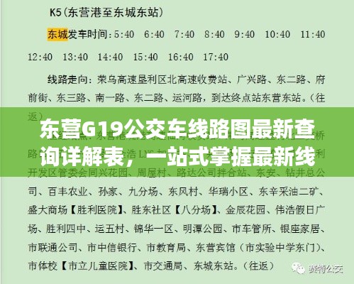 随着城市交通的日益发展,公交车成为了市民出行的重要交通工具之一,东营G19公交车线路作为城市公共交通的重要组成部分,其线路图的最新查询表对于市民出行具有极大的参考价值,本文将详细介绍东营G19公交车线路图的最新查询表,为市民提供便捷的出行信息。