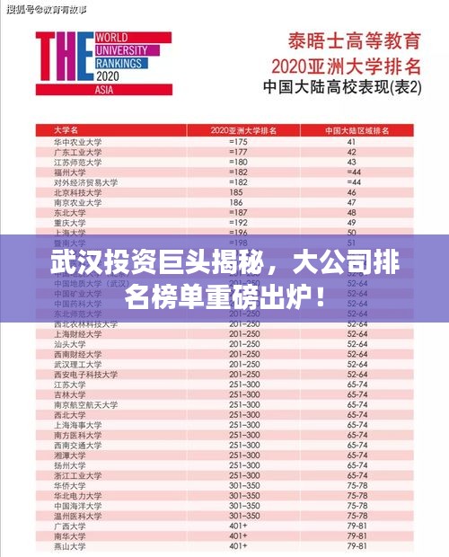 武汉投资巨头揭秘,大公司排名榜单重磅出炉!
