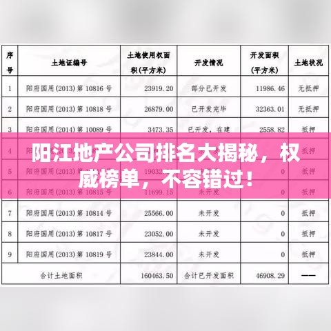 阳江地产公司排名大揭秘,权威榜单,不容错过!
