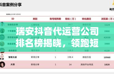 瑞安抖音代运营公司排名榜揭晓,领跑短视频营销的佼佼者