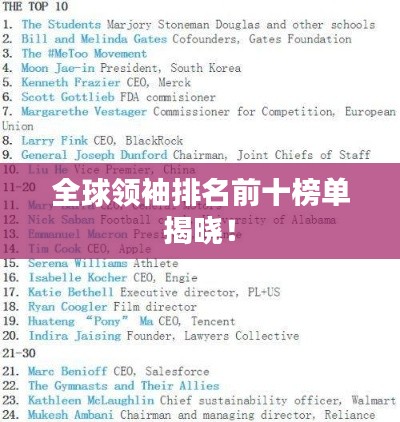 全球领袖排名前十榜单揭晓!