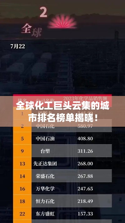 随着全球经济的发展,化工行业已成为支撑各国工业发展的重要支柱之一,在众多化工城市中,一些城市因其独特的地理位置、资源优势和产业基础而崭露头角,成为了全球著名的化工城市,本文将介绍世界著名化工城市的排名及其特点。