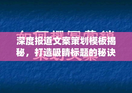 在媒体行业,深度报道以其独特的视角和深度分析,成为吸引读者眼球的重要形式,本文将为大家介绍一个深度报道文案策划模板,帮助撰写更具吸引力和影响力的报道。