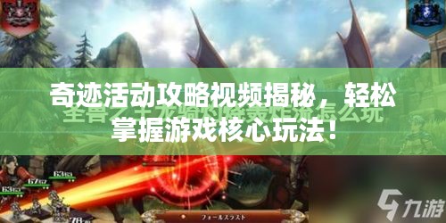 奇迹活动攻略视频揭秘,轻松掌握游戏核心玩法!