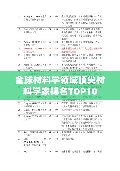 材料学作为一门研究材料的科学,涵盖了材料的制备、性能、结构与应用等多个方面,随着科技的飞速发展,材料学领域的研究日益受到全球科学家的关注,本文将介绍全球材料学领域排名前十的材料学家,他们以其杰出的贡献和卓越的成就,为材料学领域的发展做出了重要的贡献。