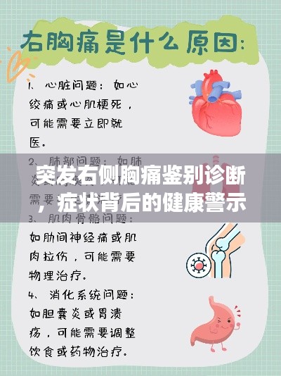 突发右侧胸痛可能由多种原因引起,鉴别诊断非常重要,本文介绍了胸痛的可能原因、鉴别诊断要点以及常见疾病的鉴别,也提供了治疗建议和预防措施,希望读者能够了解并关注自己的健康状况,如有不适,及时就医。