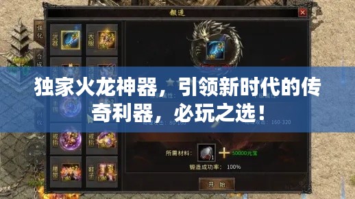 随着科技的飞速发展和游戏产业的繁荣,各种神器装备层出不穷,而今天我们要介绍的,是一款引领新时代的传奇神器——“全新独家火龙神器”。