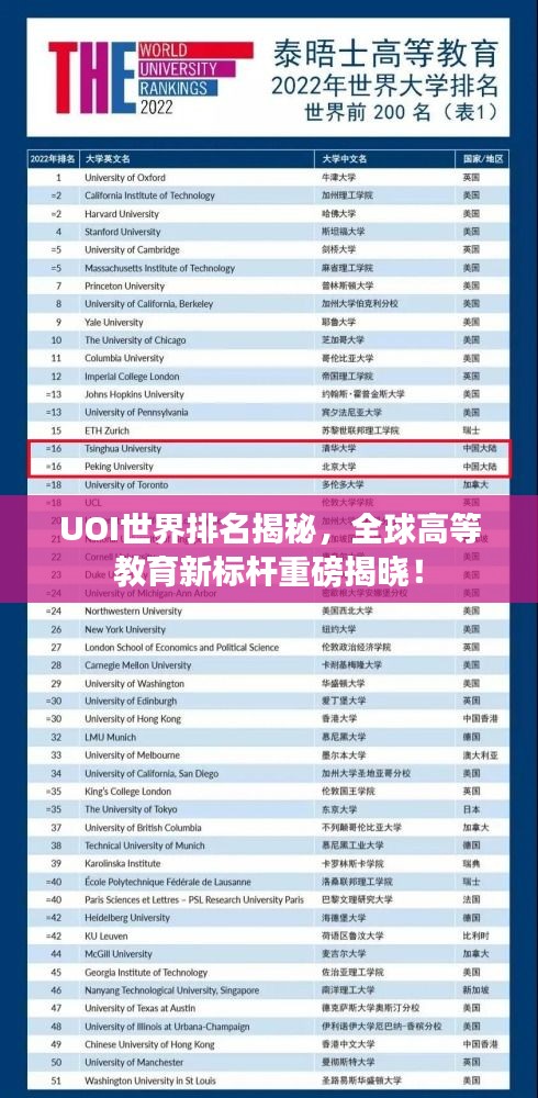 随着全球化的不断发展,高等教育领域的竞争也日益激烈,各国高校都在努力提升自己的综合实力,吸引全球优秀学子前来求学,在这样的背景下,UOI世界排名逐渐成为评估高校综合实力的重要参考指标之一,本文将探究UOI世界排名的内涵、评价标准和影响力,以及它如何塑造全球高等教育的未来。