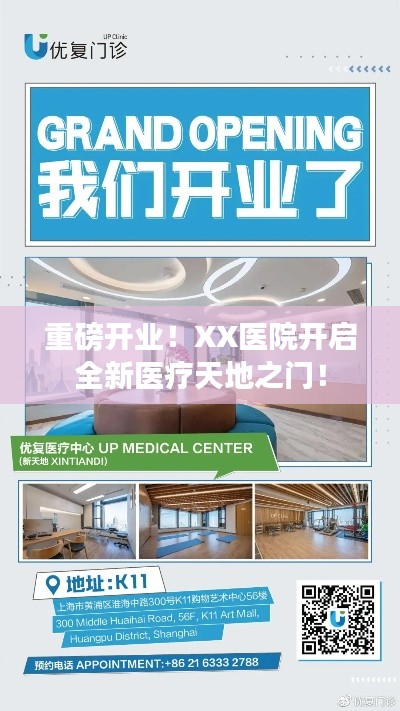健康是人生的宝贵财富,我们深知每一位市民对优质医疗服务的渴望,我们荣幸地宣布——XX医院即将盛大开业!我们致力于为广大市民提供全面、先进的医疗服务,为您的健康保驾护航。