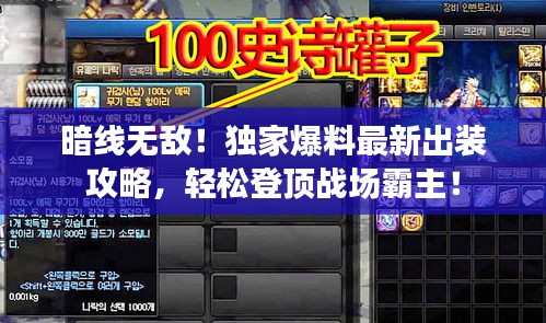 在各大游戏中,英雄角色的装备选择对于战斗力的提升至关重要,本文将为大家带来“暗线无敌”角色的最新出装攻略,帮助玩家更好地掌握角色能力,提升战斗效果。