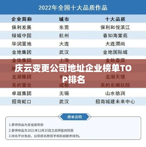 本文针对庆云地区变更公司地址的公司进行了排名,并对企业变更地址的重要性及相关建议进行了分析,企业在发展过程中需要不断适应市场变化,包括变更公司地址,合适的地址有助于企业更好地整合资源、优化产业布局、提高市场竞争力,企业在考虑变更地址时,需要充分评估自身实力和市场环境,以确保企业的长远发展。