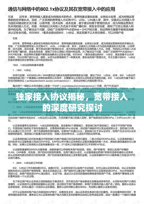 随着信息技术的飞速发展,互联网已成为现代社会不可或缺的基础设施,宽带独家接入协议作为互联网接入服务的重要组成部分,对于保障网络服务质量、维护用户权益具有重要意义,本文将围绕宽带独家接入协议展开探讨,分析其概念、特点、作用及实际应用等方面。