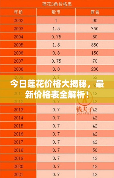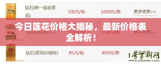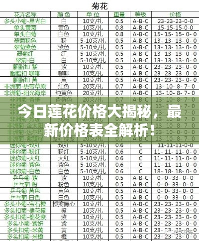 随着季节的变换,莲花作为一种深受人们喜爱的植物,其市场价值也在不断变化,本文将为您带来今日莲花的最新价格表,让您了解市场动态,为您的购买或投资提供有价值的参考。