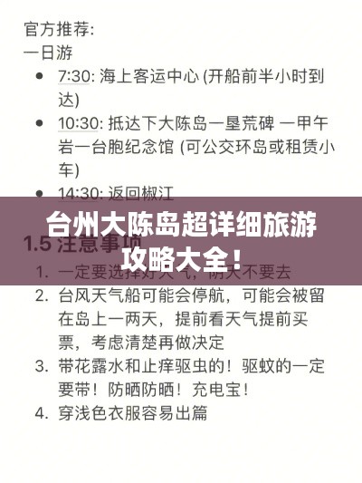 台州大陈岛,一个美丽的海岛,拥有丰富的自然资源和独特的文化魅力,这里既有迷人的沙滩、清澈的海水,又有丰富的海鲜美食和深厚的民俗风情,本文将为您提供一份详尽的台州大陈岛旅游攻略,带您领略这个海岛的独特魅力。