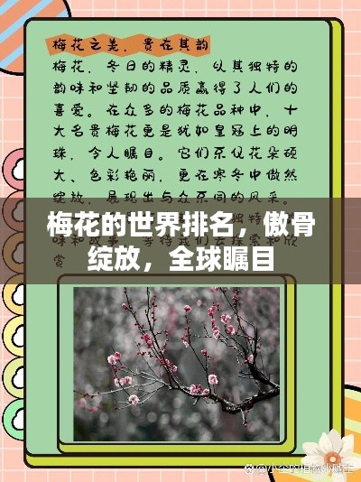 梅花是世界著名的花卉之一,以其独特的形态和美丽的花朵赢得了世界各地人们的喜爱,在全球范围内,梅花排名一直名列前茅,成为受欢迎的花卉之一,本文将探讨梅花在世界排名中的地位以及其在全球范围内的受欢迎程度。