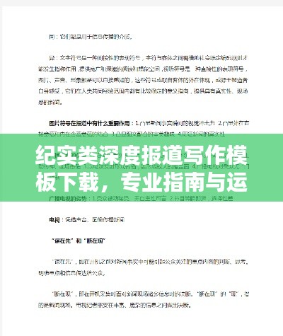 随着媒体行业的快速发展,深度报道逐渐成为公众获取信息的重要途径,纪实类深度报道以其真实、深入的特性,深受读者喜爱,本文将介绍如何下载并使用纪实类深度报道模板,帮助新闻工作者更高效地完成报道写作。