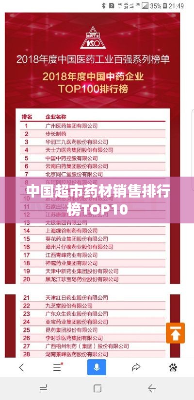 是中国超市药材排名前十名的介绍,这些药材因其独特的疗效和广泛的应用而备受消费者青睐,不过,需要提醒的是,虽然这些药材具有一定的疗效,但在使用时仍需谨慎,最好在医生或专业人士的指导下使用,购买药材时,应选择正规渠道,确保药材的质量和安全性,希望通过本文的介绍,能帮助您更好地了解中国超市药材的销售情况,为您的健康保健提供一些参考。