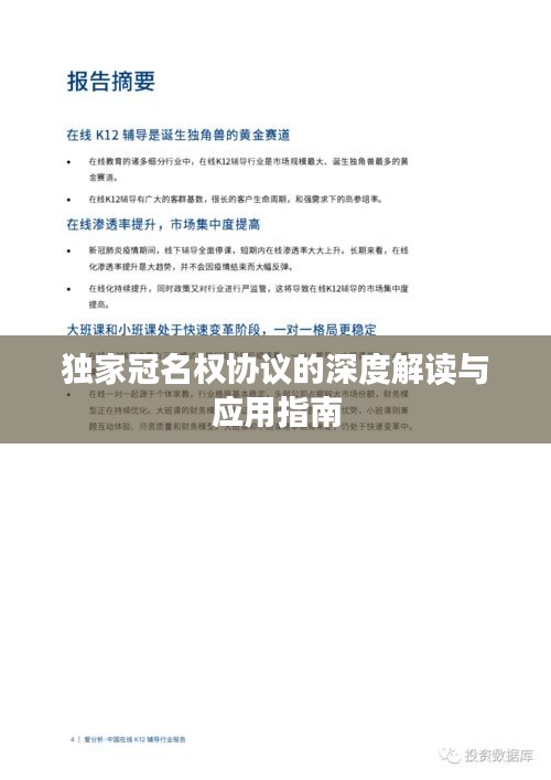 在商业领域中,独家冠名权协议是一种常见的商业合作方式,广泛应用于各类活动、赛事、节目等场合,本文将为您深度解析独家冠名权协议的相关内容,并探讨其实际应用。