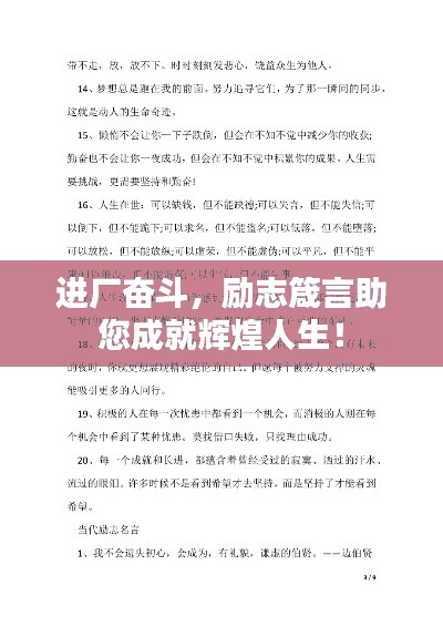 进厂奋斗,励志箴言助您成就辉煌人生!