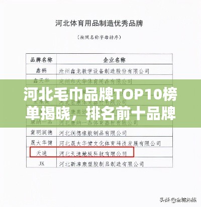 河北毛巾品牌TOP10榜单揭晓,排名前十品牌大揭秘!