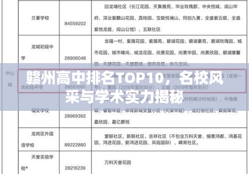 赣州,位于江西省南部,是一个历史悠久、文化底蕴深厚的城市,随着教育的不断发展,赣州的高中教育水平也在不断提高,本文将对赣州高中排名前十名进行详细介绍,让读者了解这些学校的学术实力、教育特色和学生风采。