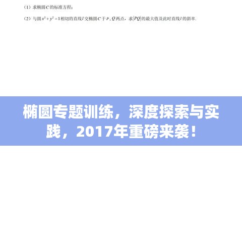 椭圆作为数学中的重要概念,在几何、物理等领域具有广泛的应用,为了帮助学生更好地理解和掌握椭圆的性质及其相关知识,本文将围绕“椭圆专题训练2017”这一主题展开,旨在通过一系列的训练题目,帮助学生深化对椭圆的理解,提高解题能力。
