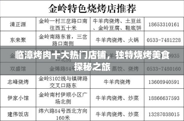 临漳县,一个充满历史底蕴与文化氛围的地方,自古以来便是美食的汇聚之地,在这片土地上,烤肉文化尤为盛行,以其独特的魅力吸引着无数食客前来品尝,本文将为您揭晓临漳烤肉排名前十名,带您领略这片土地上的烧烤美食之旅。