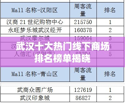 便是武汉线下商场排名前十名,这些商场各具特色,无论是高端消费还是日常购物,都能满足消费者的需求,随着时代的发展,这些商场也在不断创新,为消费者提供更加优质的购物体验。