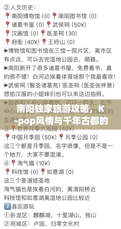 南阳,这座古韵与现代气息交织的城市,以其悠久的历史文化和繁荣的现代风貌吸引着无数游客,你既能感受到千年古城的厚重历史,又能领略到现代都市的繁华气息,而K-pop作为现代流行文化的代表,与南阳的传统文化相互碰撞,擦出别样的火花,本篇文章将为你揭示南阳的K-pop风情与旅游攻略,带你领略这座城市的独特魅力。