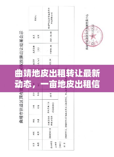 随着城市化进程的加快,土地资源的稀缺性日益凸显,曲靖作为云南省的重要城市,其地皮出租转让信息备受关注,本文将为您详细介绍曲靖一亩地皮的出租转让最新信息,以便您及时了解和把握市场动态。