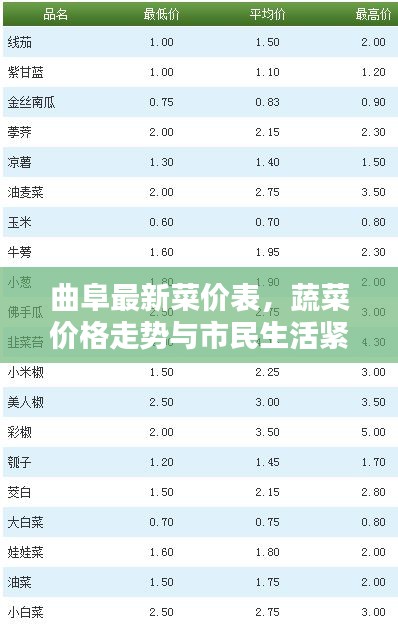 随着人们生活水平的提高,食品价格一直是广大市民关注的热点话题,作为山东省的重要城市,曲阜的菜价也是市民们关注的焦点之一,本文将围绕“曲阜今日菜价表最新查询”这一主题,探讨曲阜市蔬菜价格的变化情况,分析背后的原因,以及这些变化对市民生活的影响。