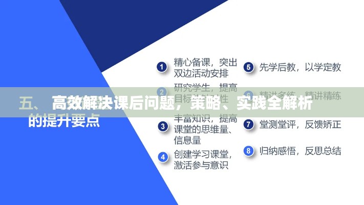 随着教育改革的深入,课堂教学不再仅仅局限于课堂内的教学内容和活动,课后问题的落实逐渐成为教学质量提升的关键环节,课后问题的有效落实不仅可以巩固学生的课堂知识,还可以提高学生的学习能力,培养其独立思考和解决问题的能力,本文将探讨如何有效落实课后问题。