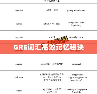 对于许多准备参加GRE考试的考生来说,词汇记忆是考试准备过程中极为重要的一环,GRE考试对词汇的要求较高,掌握高效记忆法能够帮助考生更好地备考,提高考试成绩,本文将介绍几种有效的GRE词汇高效记忆法,帮助考生更轻松地应对考试。
