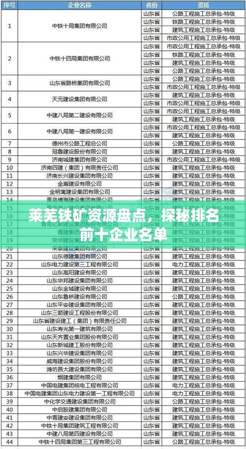注:以上排名仅为示例,并非真实排名,实际情况中,莱芜铁矿的排名可能会根据最新的勘探数据、开采情况、产量等因素有所变化。