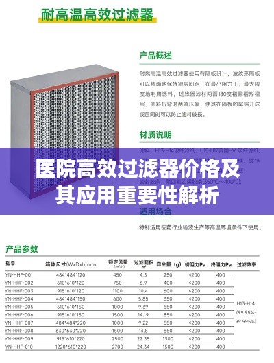随着医疗技术的不断进步,空气质量对医院环境的重要性日益凸显,为了维护医院内部的空气质量,高效过滤器成为了不可或缺的设备,本文将介绍医院用高效过滤器的售价及其在医院环境中的重要作用。