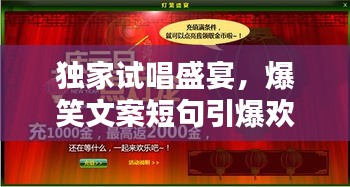在这个充满欢乐与活力的时代,独家试唱已经成为我们生活中不可或缺的一部分,为了让大家在紧张的工作之余放松心情,我们特地策划了这篇搞笑文案短句集,希望能给大家带来欢乐与笑声。
