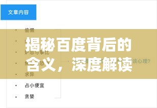 随着互联网技术的飞速发展,搜索引擎已成为我们获取信息的重要途径之一,在众多搜索引擎中,百度以其高效、准确的搜索服务赢得了广大用户的青睐。“问一下百度是什么意思”这个表述背后蕴含着怎样的含义呢?本文将从多个角度对此进行探讨。