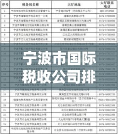 宁波市,作为长江三角洲南翼的经济中心,近年来在经济领域取得了显著的发展成果,随着全球化的推进,国际税收服务在企业和投资者之间扮演着日益重要的角色,本文将探讨宁波市国际税收公司的排名及其相关情况。