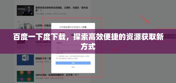 随着互联网的普及,搜索引擎已成为我们日常生活中不可或缺的工具,百度作为中国最大的搜索引擎,以其高效、准确的搜索服务赢得了广大用户的信赖,当我们需要下载某些软件、资料或应用时,“百度一下度下载”成为了我们的常用搜索语句,本文将围绕这一主题,介绍百度搜索的便捷性及其下载功能的使用方式。