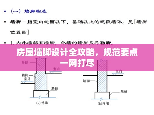 房屋墙脚作为建筑结构的重要组成部分,其设计规范的合理与否直接关系到建筑物的稳定性、安全性及使用寿命,本文将详细介绍房屋墙脚设计规范的要点,以确保墙脚设计的科学性和实用性。