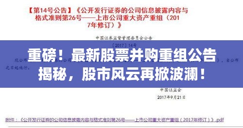 随着资本市场的日益繁荣,股票并购重组已成为企业扩大规模、优化资源配置、提升竞争力的重要手段,市场上关于股票并购重组的公告频频发布,为投资者提供了众多新的机遇,本文将对最新的股票并购重组公告及消息进行梳理和分析。