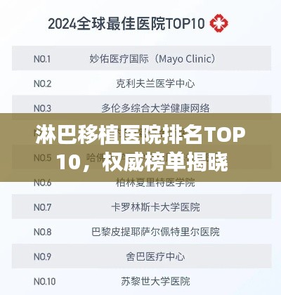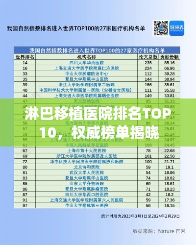 淋巴移植是一种复杂的医疗过程,需要高水平的医疗技术和专业的医护团队,在寻找合适的淋巴移植医院时,患者和家属往往希望了解哪些医院在淋巴移植领域具有卓越的专业水平和经验,本文将介绍淋巴移植医院排名前十名,以供您参考。