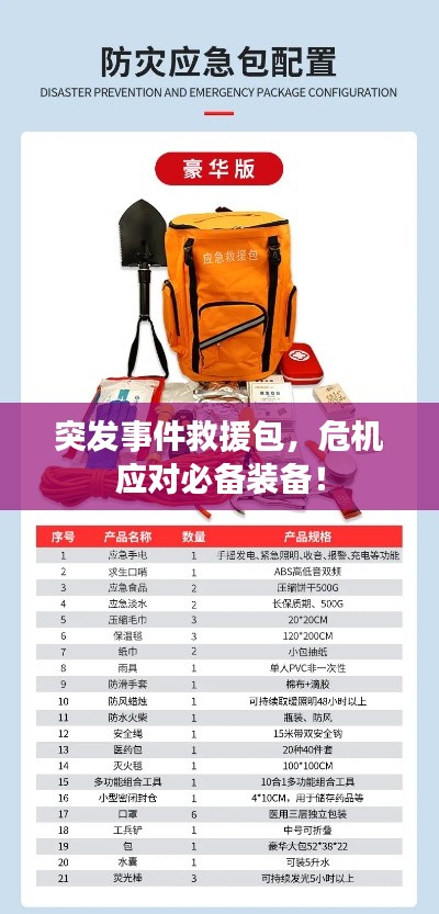 随着自然灾害、事故灾难等突发事件的频繁发生,如何快速、有效地进行救援成为了社会关注的焦点,在这样的背景下,突发事件救援包应运而生,成为了应对危机的关键装备。