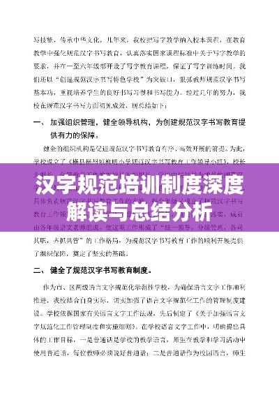 随着社会的快速发展,规范汉字的使用和传播显得尤为重要,为了提高人们的汉字书写水平,加强汉字文化的传承,实施规范汉字培训制度至关重要,本文旨在总结规范汉字培训制度实施过程中的经验、成效与不足,并提出改进建议,为今后工作的开展提供参考。